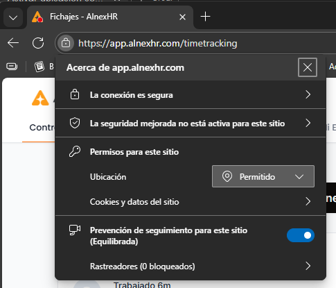 En la mayoría de los casos, con la configuración del sistema operativo será suficiente. No obstante, si la localización sigue sin detectarse, puede ser necesario conceder acceso a la ubicación directamente desde el navegador para la web de AlnexHR.