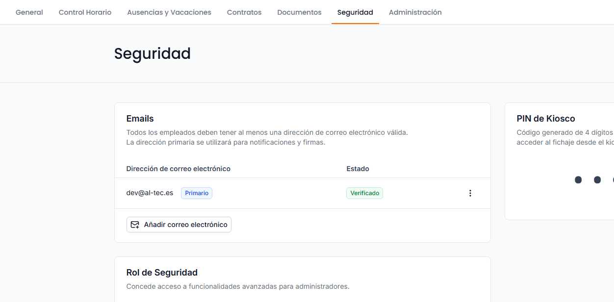 Recuerde que la cuenta de correo principal será la que utilizará el empleado o empleada para acceder a la plataforma. Informe al usuario cuando cambie para no generar incidencias o problemas de fichaje.