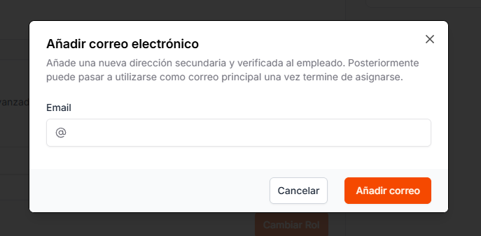 Los empleados y empleadas tienen configurado un correo electrónico primario con el que acceden a la plataforma y trabajan a diario. También pueden añadir correos secundarios en preparación de una migración de cuentas.